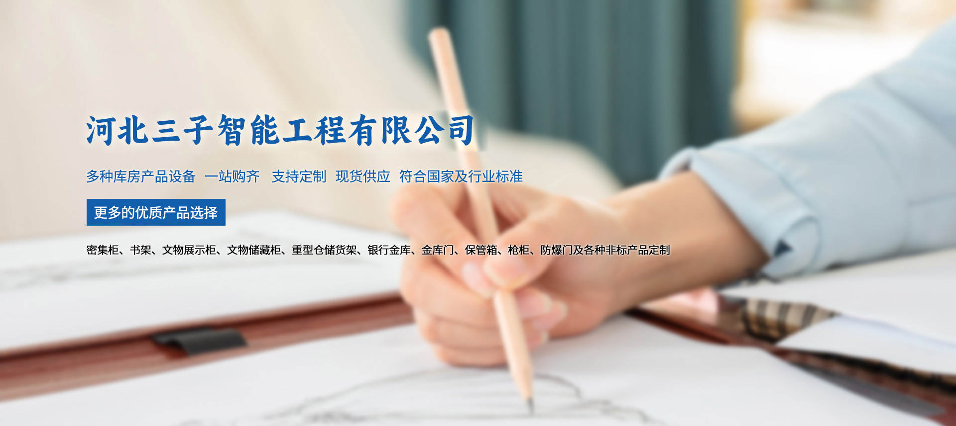 河北三子智能工程有限公司主營密集柜、書架、文物展示柜、文物儲藏柜、重型倉儲貨架、銀行金庫、金庫門、保管箱、槍柜、防爆門及各種非標產(chǎn)品定制。我們集研發(fā),設(shè)計,生產(chǎn),銷售和服務(wù)于一體,擁有國內(nèi)先進的設(shè)備和專業(yè)的制作團隊,我們秉承踏實,創(chuàng)新,責(zé)任的企業(yè)精神服務(wù)于檔案存儲,倉儲物流,農(nóng)業(yè)部,博物館,美術(shù)館,銀行,部隊,學(xué)校等多個領(lǐng)域,我們始終堅持用戶至上和精益求精為客戶提供優(yōu)質(zhì)的產(chǎn)品及服務(wù)。